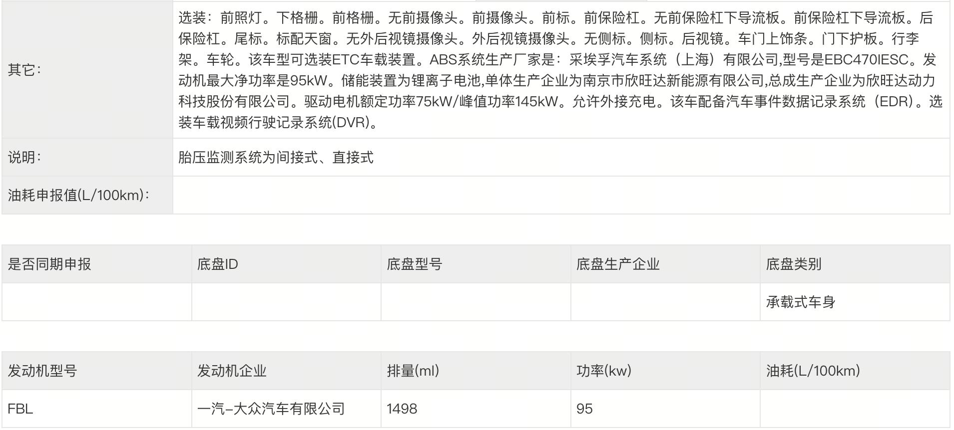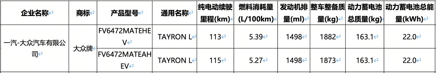 一汽-大众探岳 L PHEV 常规版申报信息