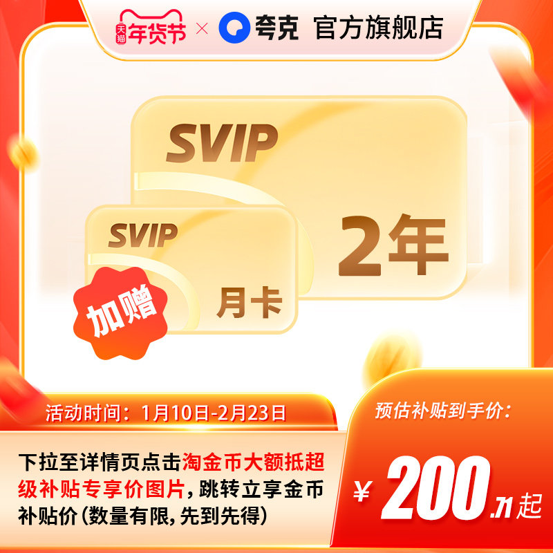 今日年货节大促双年卡 + 月卡仅需 179.71 元,低至 7.2 元 / 月、86.3 元 / 年。