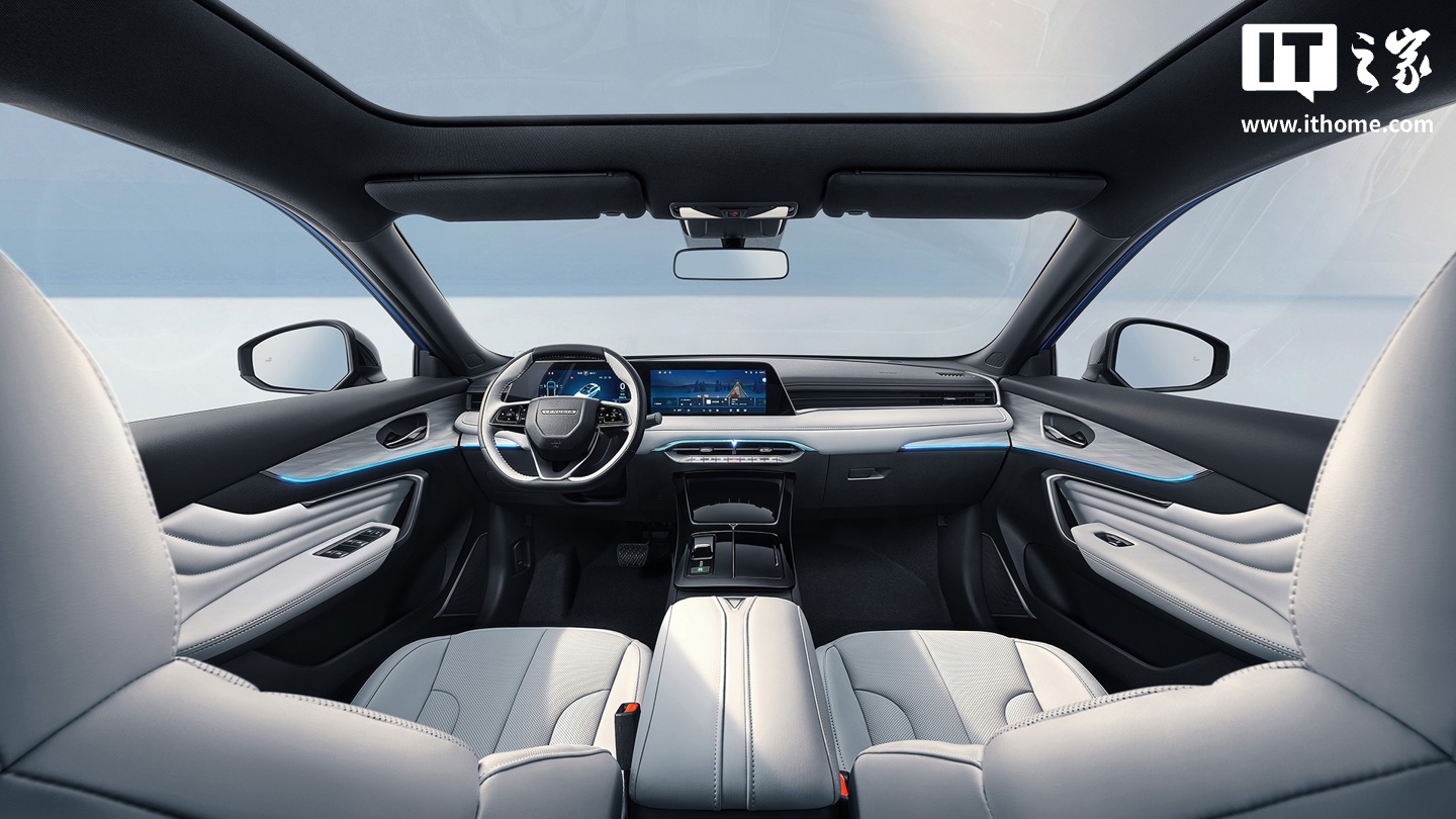 该车采用封闭式造型前脸及分体式前灯组,车身采用传统造型门把手,车尾使用贯穿式尾灯,带有隐藏式排气布局。座舱匹配双联屏,带有三辐式方向盘、电子换挡杆。