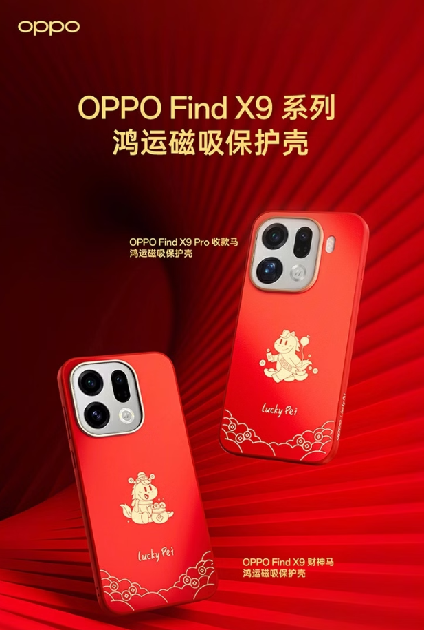 OPPO Find X9 鸿运磁吸保护壳 99 元、OPPO Find X9 Pro 鸿运磁吸保护壳 99 元:财神马、收款马限定鸿运外观,细腻工艺、裸机质感。