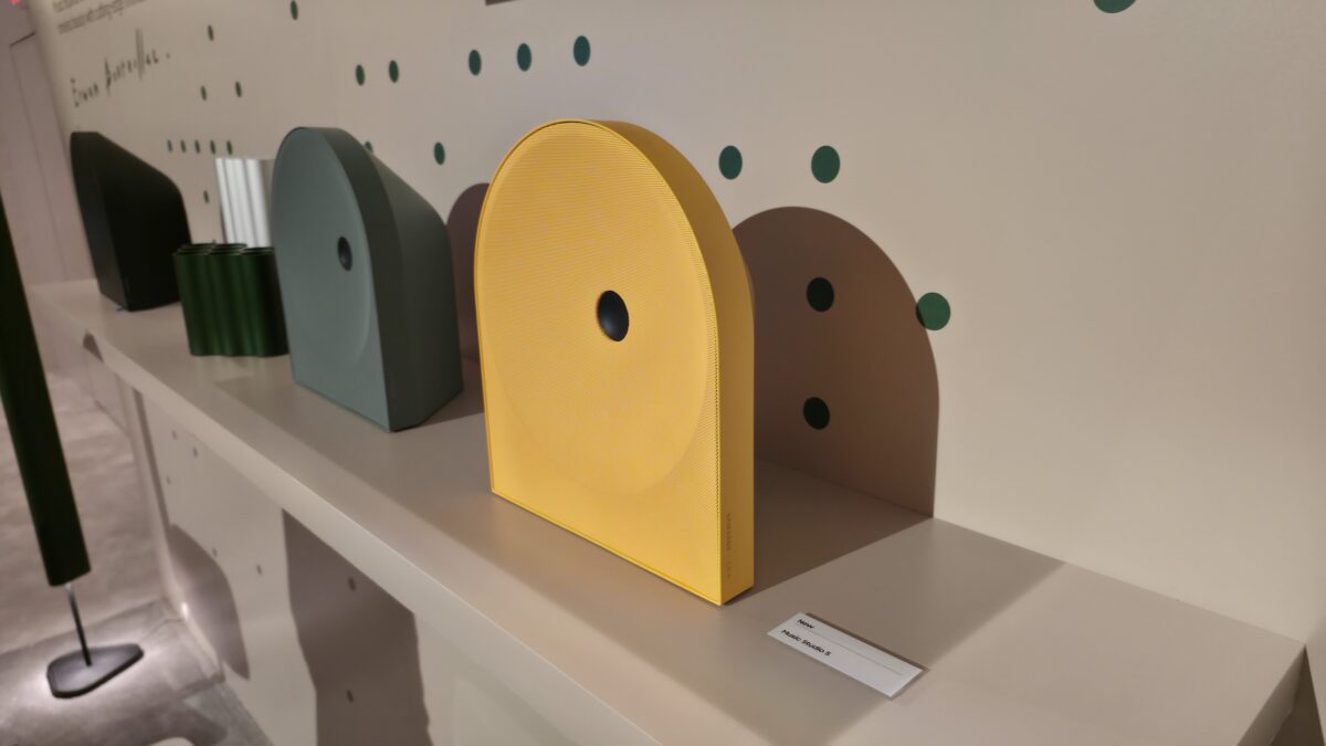 Music Studio 5 是一款 2.1.1 声道音箱,配备左向、右向和顶向发声的高音单元,以及一枚 4.2 英寸低音单元。Music Studio 7 则为 3.1.1 声道设计,搭载左、右、顶、前四个方向发声的高音单元,并匹配一枚 5 英寸低音单元。