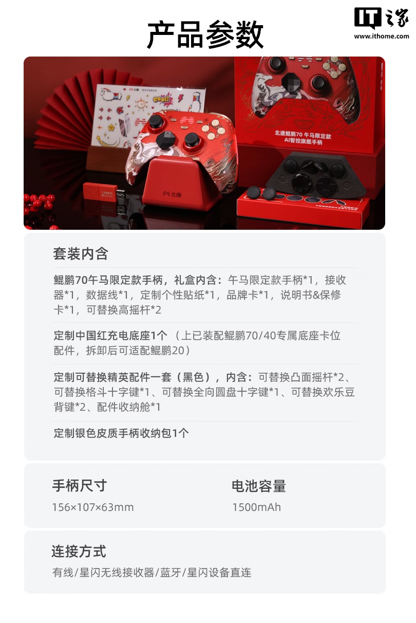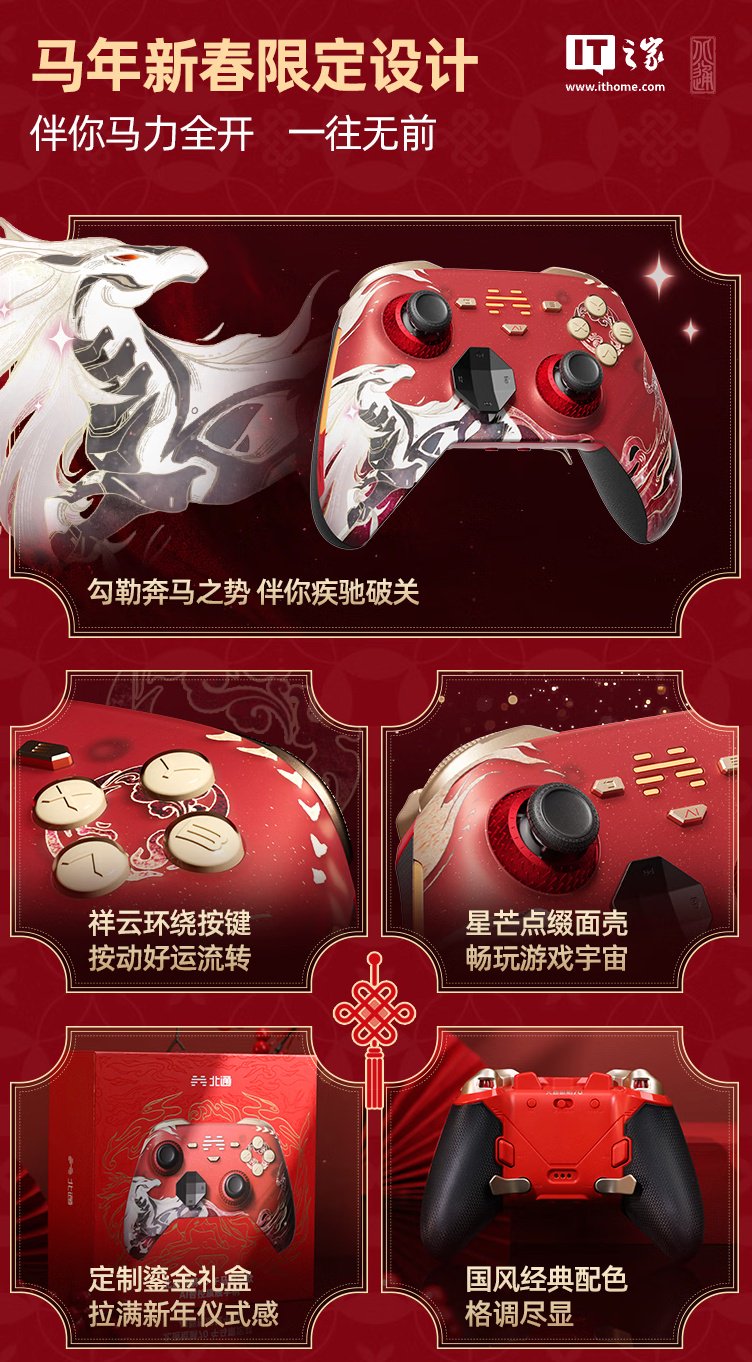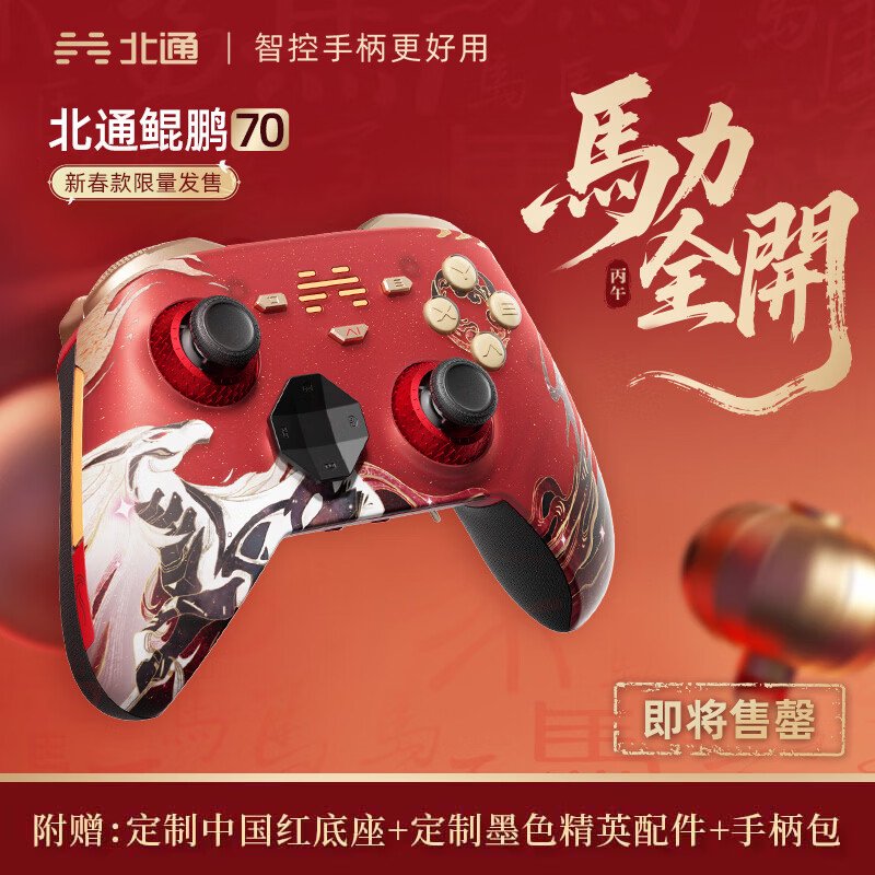 IT之家 1 月 13 日消息,北通旗下鲲鹏 70 马年新春限定款游戏手柄现已在京东开售,定价为 688 元。