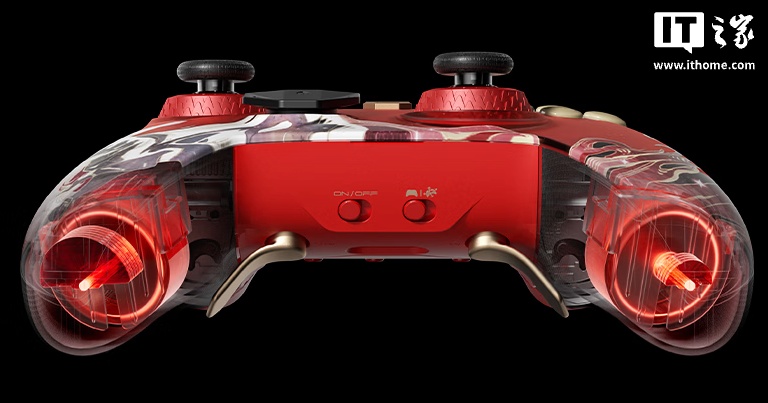 据介绍,该产品相对于标准版手柄主要将面壳换为红色主题色,并带有金粉缀饰,按键位置带有祥云图案,握把处带有骏马图案。
