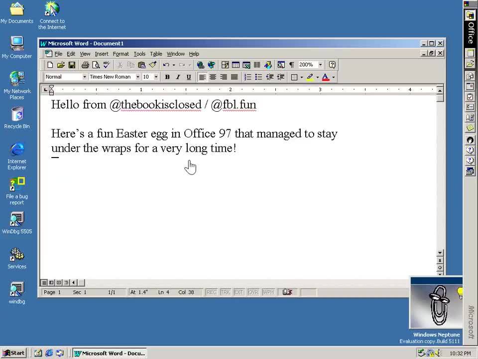 虽然 Office 97 中此前已被发现过一些广为人知的彩蛋,但此次发现的彩蛋隐藏极深,其激活步骤相当繁琐。