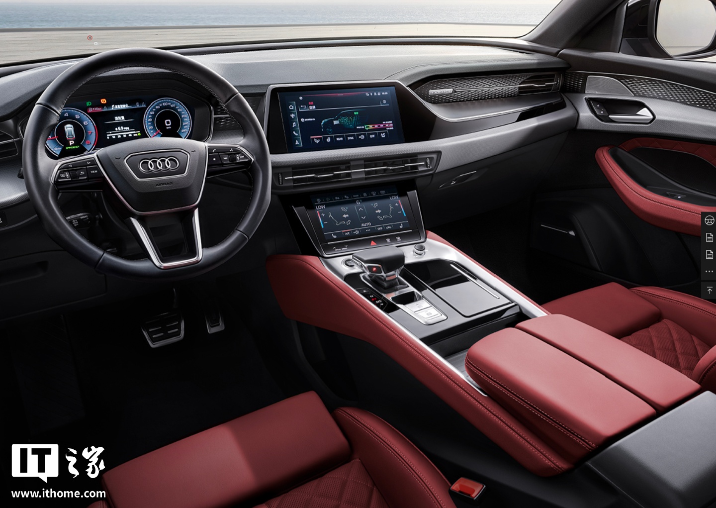 内饰方面,2026 款奥迪 Q6 延续了老款车型的设计风格,配备四辐式多功能方向盘、12.3 英寸液晶仪表盘、10.1 英寸悬浮式中控屏以及 8.6 英寸功能控制屏。尽管保留了大部分老款车型的配置,但大灯清洗系统被取消。