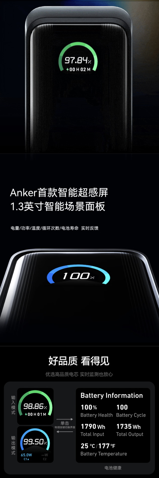 该产品兼容 PD、PPS、SCP、UFCS、QC 协议,可用 AC 输入或通过 30W USB-C 接口自充(先充设备再自充),在充电器 / 充电宝模式下均支持 65W 输出。