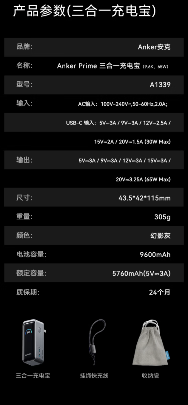 IT之家 1 月 15 日消息,安克旗下新款 Anker Prime 65W 三合一 10000mAh 充电宝现已经在京东开启首销,主要新增 USB-C 自带线(22 厘米长度、可作挂绳使用)、同时提供了 2 个 USB-C 接口,定价 369 元。