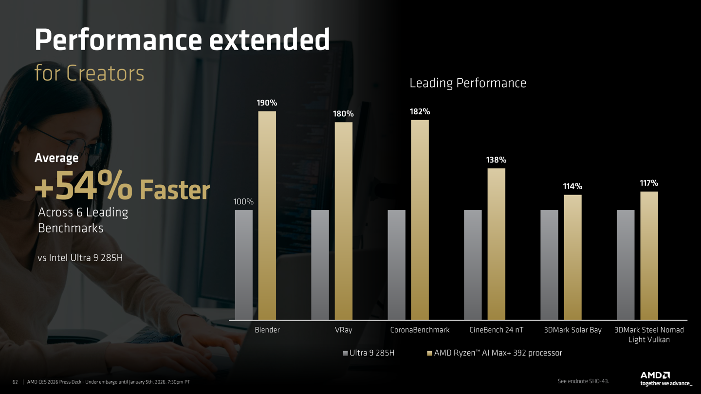 该媒体为了更直观地体现这一性能水平,对比桌面级处理器:该成绩已超越 Ryzen 9 7900X(12 核桌面版)的 17740 分,并逼近 Ryzen 7 9800X3D 的 18347 分。考虑到移动端芯片在功耗与散热上的天然限制,这一表现足以证明 Strix Halo 架构极高的能效比。