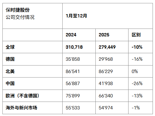 IT之家 1 月 16 日消息,保时捷今日发布声明称,2025 年全球新车交付量达 279,449 台,较上一年度的 310,718 台同比下滑 10%。