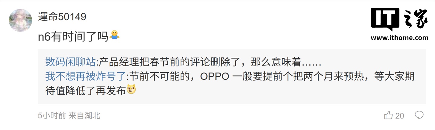 后续有用户在评论区询问:“n6 有时间了吗”,博主回复道:“产品经理把春节前的评论删除了,那么意味着……”。