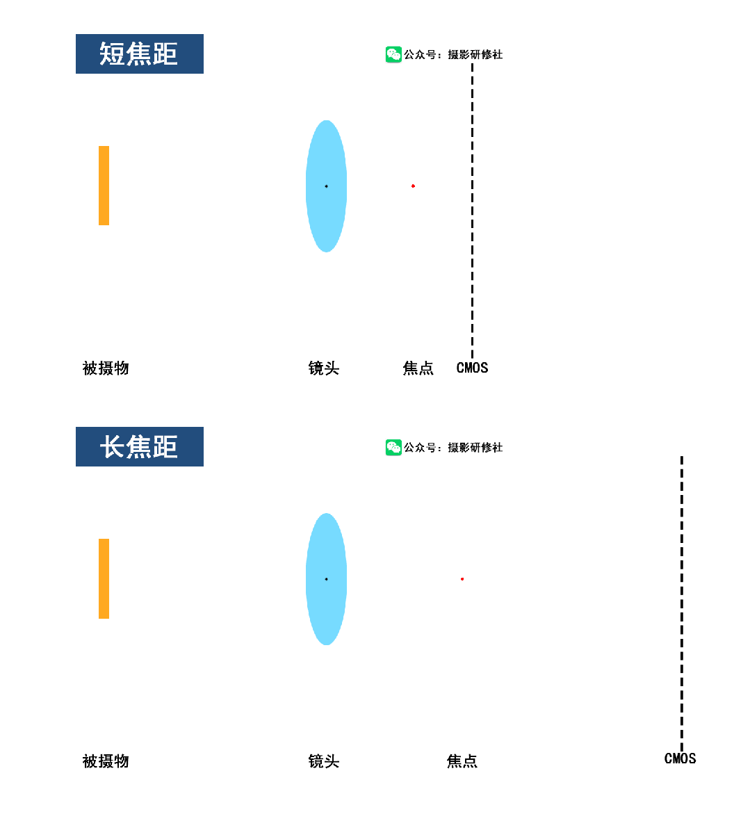 通过光路图,也能得出大孔径、长焦距可以获得小景深的结论。