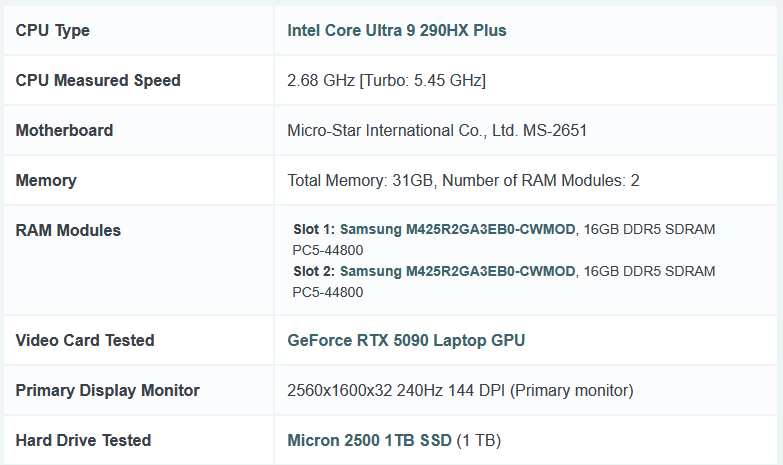 IT之家 1 月 17 日消息,科技媒体 TechPowerUp 今天(1 月 17 日)发布博文,报道称英特尔旗舰级移动处理器酷睿 Ultra 9 290HX Plus 现身 PassMark 跑分库,测试机型为微星笔记本,搭配 RTX 5090 显卡和 32GB DDR5-5600 内存。