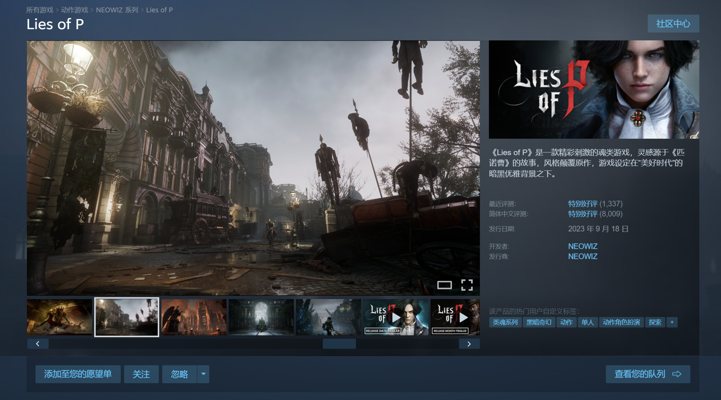 IT之家 1 月 18 日消息,魂类游戏《匹诺曹的谎言》现已在 Steam 平台开启新一轮 5 折促销,国区原价 298 元,折后价 149 元,截至 1 月 24 日。