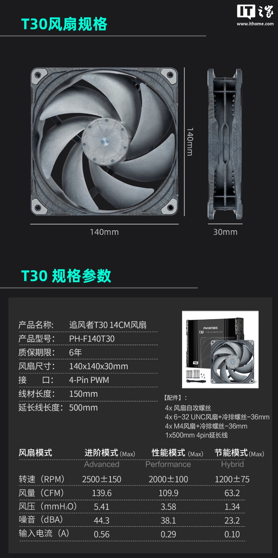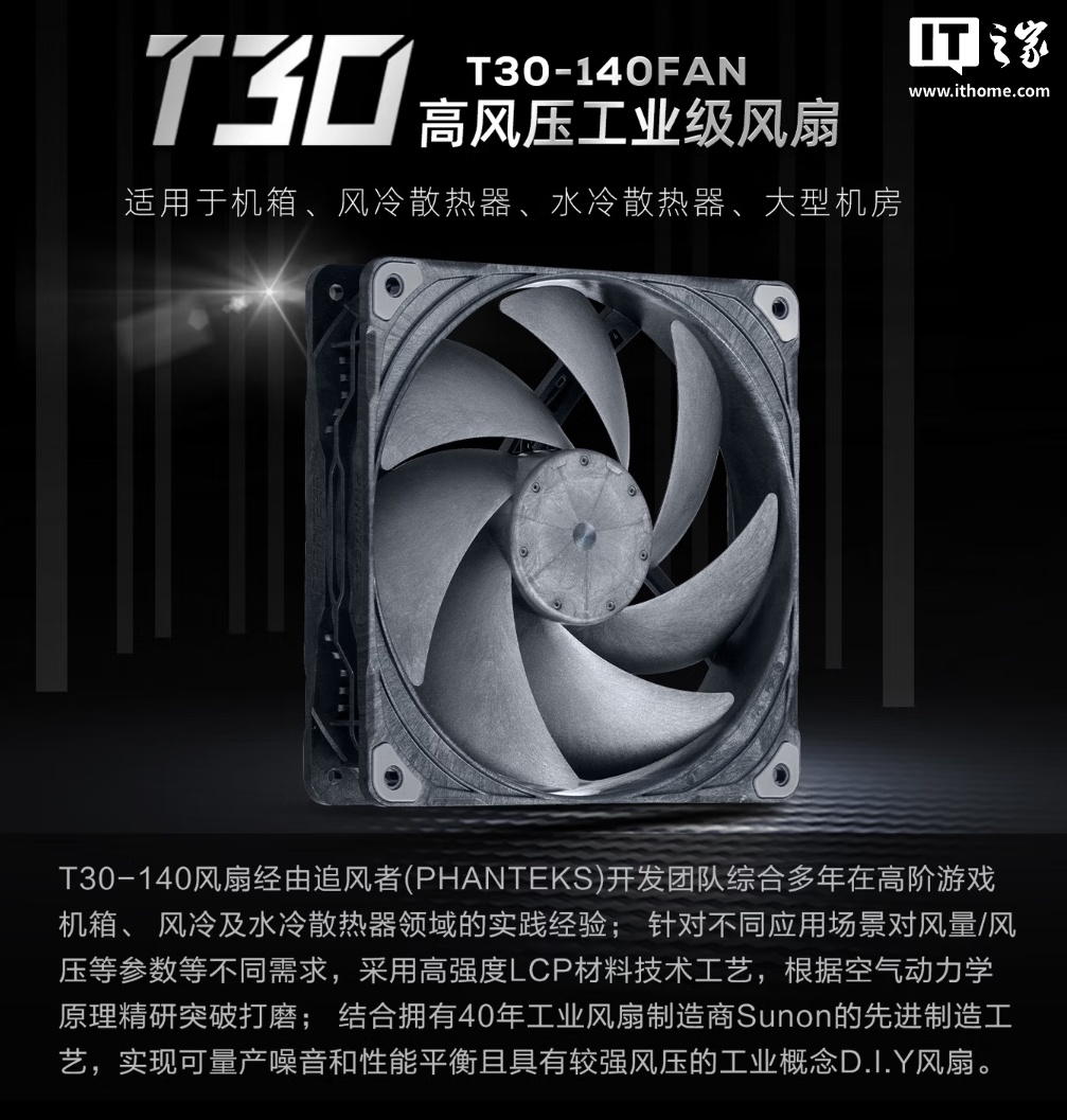 IT之家 1 月 18 日消息,追风者 T30-140 风扇现已上市,新品适用于机箱、风冷散热器、水冷散热器以及大型机房,定位高风压工业级,售价 249 元起。
