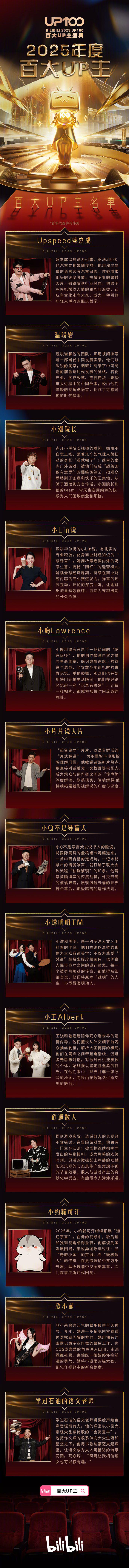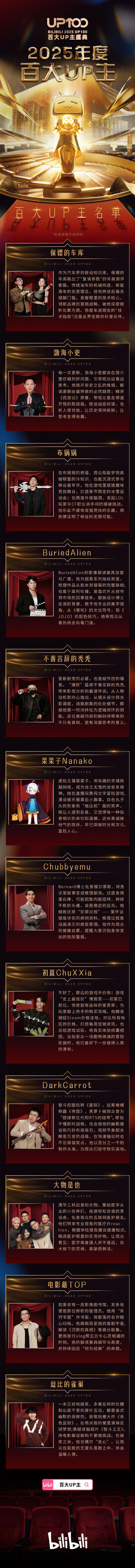 IT之家 1 月 18 日消息,B站 2025 百大 UP 主名单今日公布并将于 18:00 举行主盛典,该奖项从「专业性、影响力、创新性」等维度进行评审。