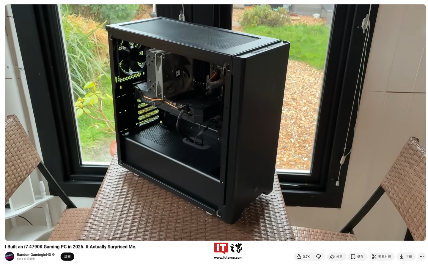视频一开始,博主先介绍了他这次装机的配置组合:英特尔酷睿 i7-4790K CPU、32GB DDR3 1866MHz 内存以及华硕 Z97 主板,并搭配 RTX 2060 Super 显卡,其中这组 DDR3 内存只花了 40 美元(IT之家注:现汇率约合 279.5 元人民币),价格等同于如今一条 8GB 4800MT/s 的 DDR5 内存。