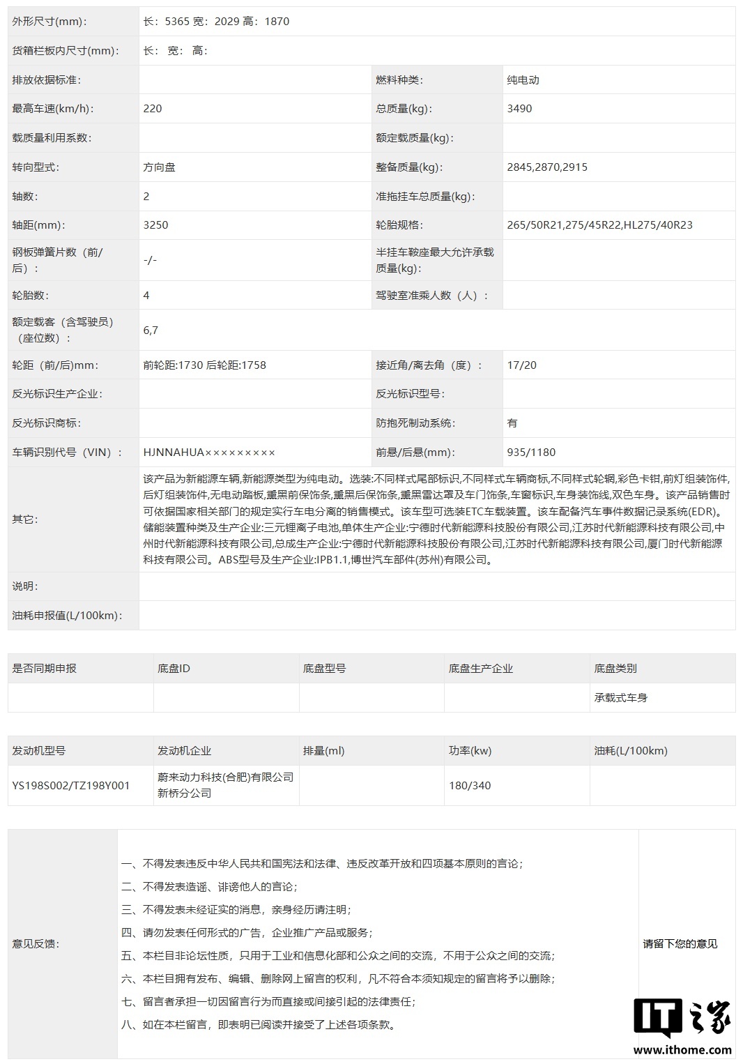 该车已在本月初登陆工信部《道路机动车辆生产企业及产品公告》(第 403 批)的车辆新产品公示清单,IT之家汇总主要参数信息如下: