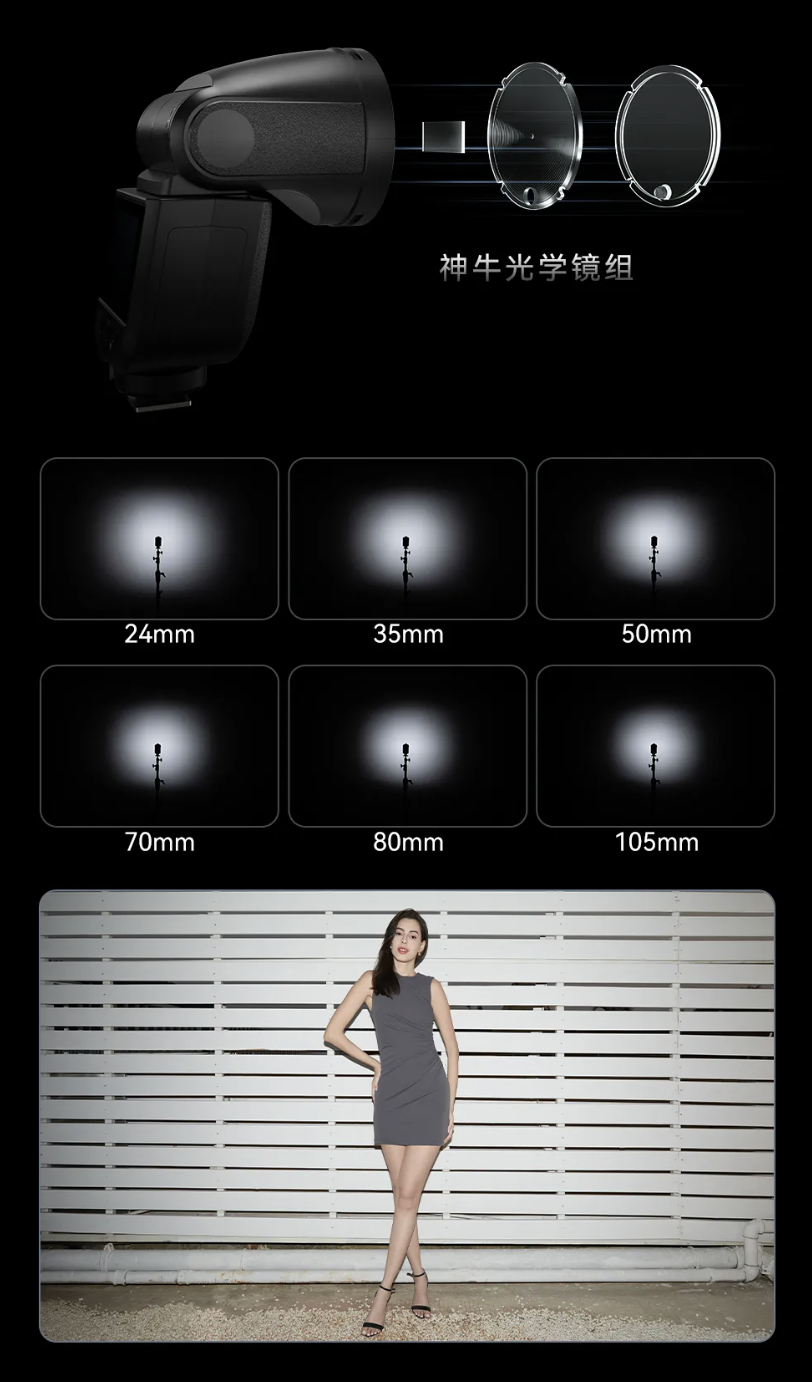 该产品采用圆形灯头及自研神牛光学透镜组,内置三片式复合光学透镜阵列,号称可以有效提升皮肤质感,增加光影层次。