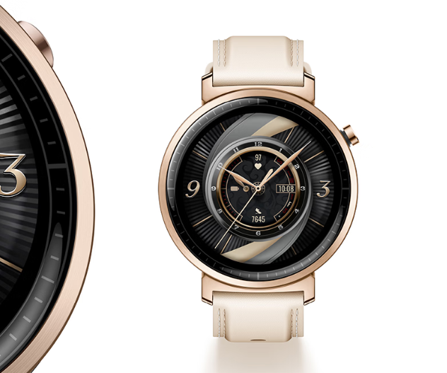 手表机身薄至 9.9mm、轻至 26g,采用铝合金表圈、真皮表带。通过创新堆叠,搭载了 495mAh 大容量硅碳负极电池。充电一次,蓝牙续航可达 23 天、开启 AOD 也能拥有 9 天的续航时间。