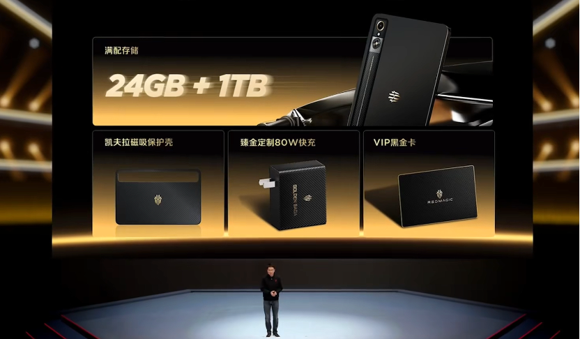 IT之家 1 月 20 日消息,在今天的红魔 11 Air 电竞手机新品发布会中,官方还推出了红魔电竞平板 3 Pro GOLDEN SAGA 臻金传奇・限量典藏版,该机提供 24GB RAM + 1TB 存储,同时带有凯夫拉磁吸保护壳、80W 定制充电头、VIP 黑金卡,定价为 7999 元。