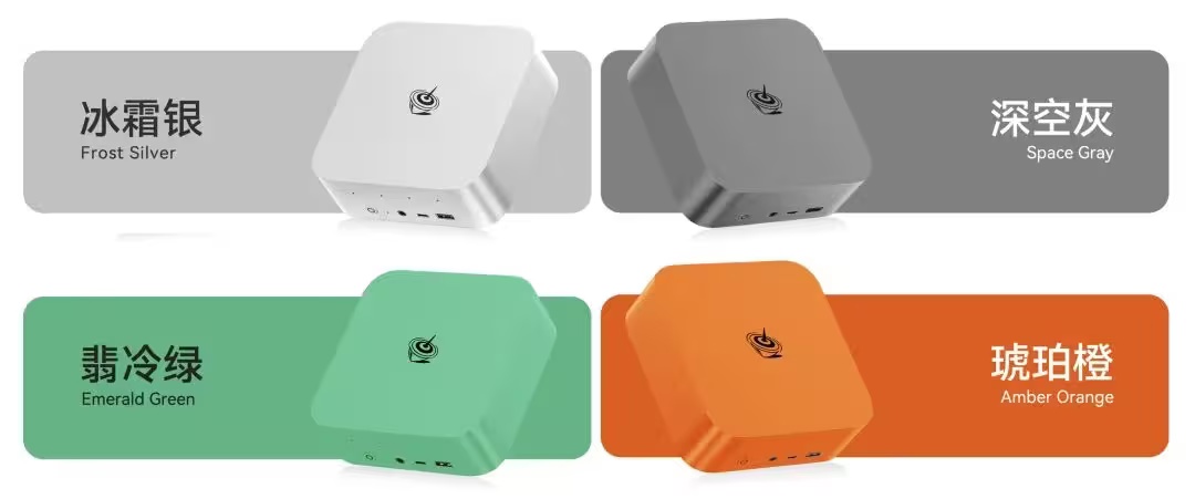 SER10 Pro:搭载 LPDDR5X 板载高速内存,提供冰霜银、深空灰、琥珀橙、翡冷绿四种配色,内置麦克风、扬声器,支持豆包语音互动、远程会议等场景。