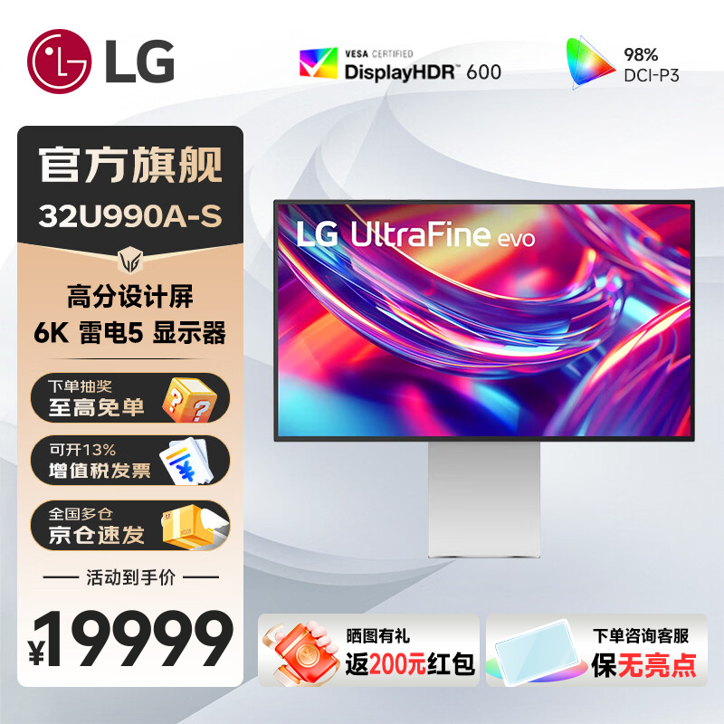 IT之家 1 月 20 日消息,LG“32U990A-S”31.5 英寸旗舰显示器目前已在京东上架(此前仅在 LG 自家商城销售),这是全球首款支持雷电 5 接口的 6K 显示器,售价为 19999 元。