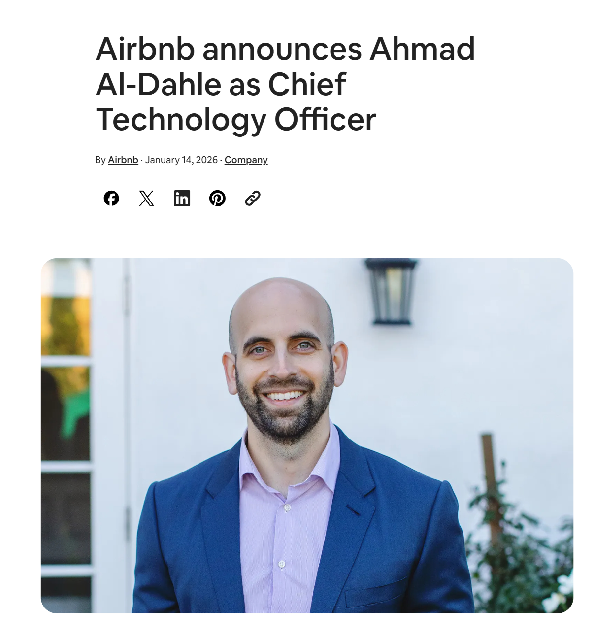 IT之家 1 月 20 日消息,民宿出租平台 Airbnb 爱彼迎上周(1 月 14 日)宣布 AI 领域人才 Ahmad Al-Dahle 加盟首席技术官(CTO)。