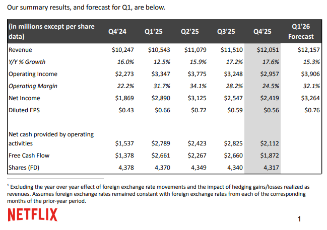 IT之家 1 月 21 日消息,流媒体平台 Netflix 今日公布了最新的 2025 财年全年业绩。尽管过去一年多次涨价并引入含广告版,但在《怪奇物语》《K-Pop 猎魔女团》《弗兰肯斯坦》《利刃出鞘 3:亡者归来》等热门内容带动下,平台用户规模和营收均实现增长。
