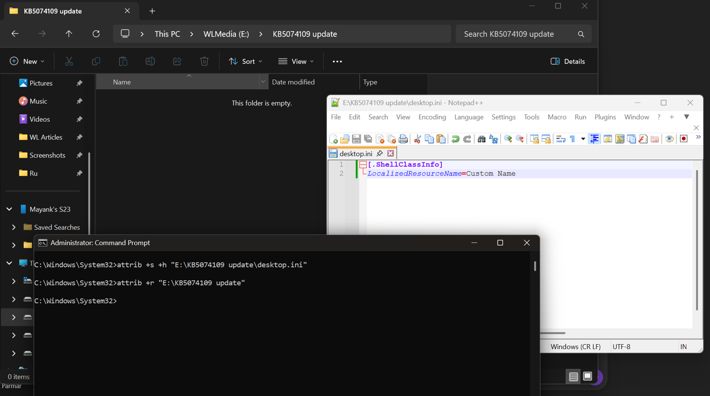 在系统底层,文件资源管理器不再遵循 desktop.ini 中的 LocalizedResourceName 指令,导致用户自定义的文件夹名称和隐藏属性失效,暴露出原始文件夹名,这表明 shell32.dll 等核心组件可能在更新中受损。
