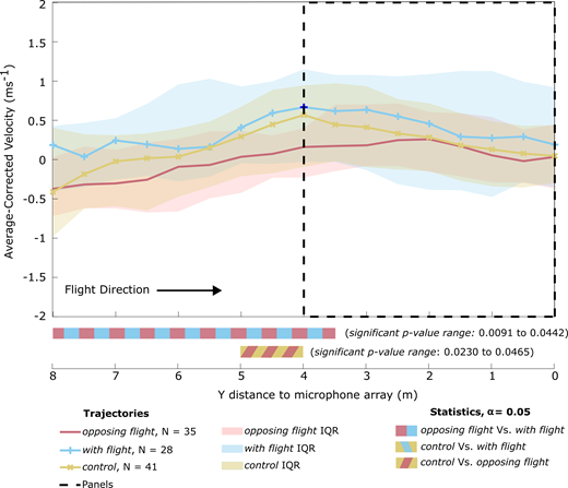 实验过程中,研究团队通过控制这些反射体的运动方向和速度,人为改变蝙蝠在飞行中感受到的声学流速。当反射体逆着蝙蝠飞行方向运动、使声学流速增加时,蝙蝠会显著减速,最高减幅约为 28%;而当反射体与蝙蝠同向运动时,蝙蝠则会加速飞行。这表明蝙蝠能够感知与声学流速相关的多普勒效应,并据此调节自身速度。
