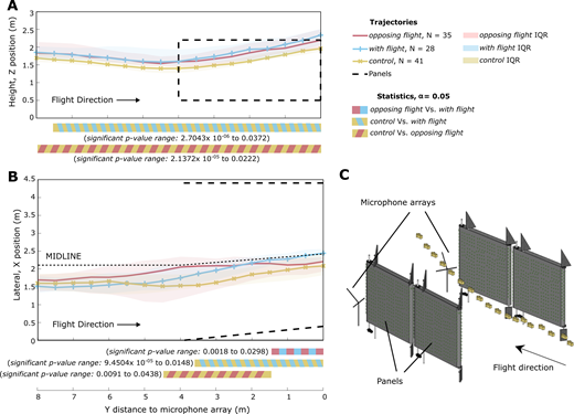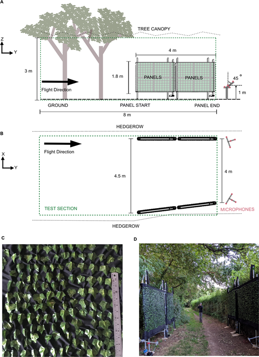 为验证这一假设,研究人员设计并建造了一套名为“蝙蝠加速器”的实验装置。这是一条长约 8 米的飞行通道,通道两侧布置了类似树篱的可旋转面板,上面安装了约 8000 个声学反射体(人工“叶片”),用以模拟真实树篱产生的回声环境。实验在 3 个夜晚共记录了 181 条普通伏翼蝙蝠的飞行轨迹,其中 104 只完整通过测试区的个体被纳入分析。