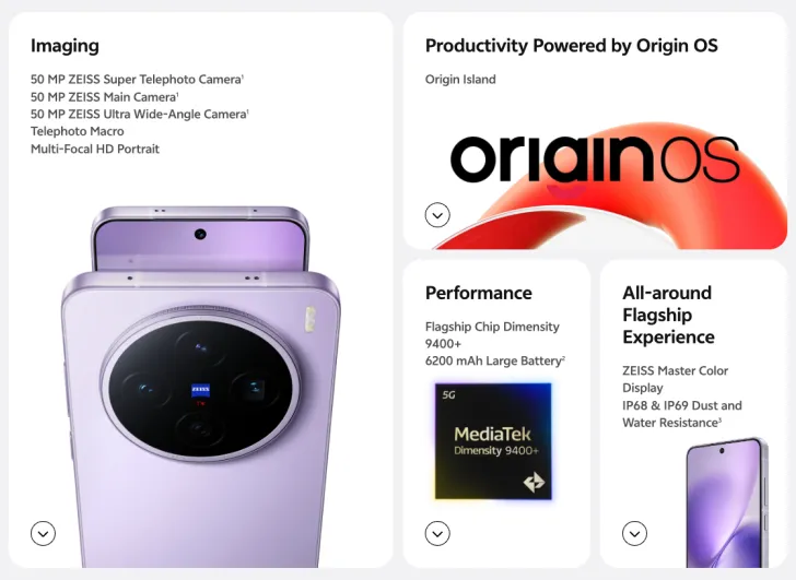 参数方面,这款手机搭载联发科天玑 9400+ 八核芯片,带有 Immortalis-G925 GPU,最高可选 12GB 内存以及 512GB UFS 4.1 存储,内置液冷 VC 均热板,面积达 4500mm²。
