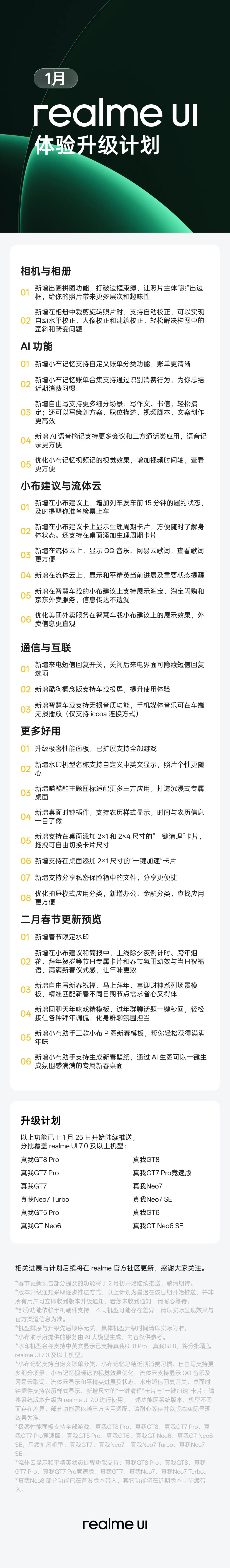 IT之家 1 月 27 日消息,真我手机社区管理员官方今日公布了 realmeUI 一月体验升级计划。根据规划,新版本将带来出圈拼图、流体云歌词显示、智慧车载无损音质等功能。具体计划如下: