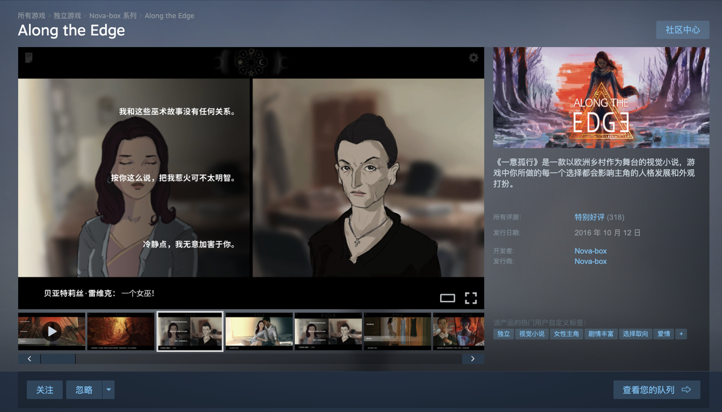IT之家 1 月 28 日消息,开发商 Nova-box 宣布旗下文字冒险游戏《Along the Edge》在 Steam 平台开启限时免费“喜加一”领取活动,玩家可以在北京时间 1 月 30 日凌晨 2 点前免费领取这款在国区定价 56 元的游戏,IT之家附商品页。