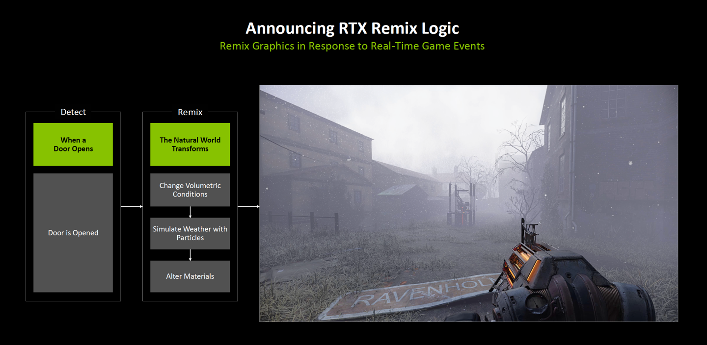 IT之家注:RTX Remix Logic 是英伟达推出的一个“游戏修改工具包”中的逻辑模块,以前为老游戏开发 MOD,通常只能换换贴图,画面是死的。