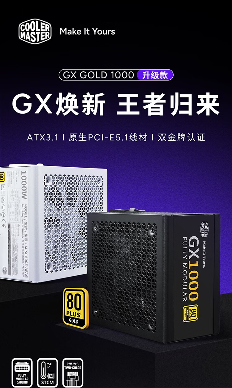 IT之家 1 月 28 日消息,酷冷至尊 (Cooler Master) 现已推出 GX GOLD 1000 电源。其采用标准长度 ATX 外形规格设计,享受包含 3 年换新的 7 年质保,黑白双版本售价均为 539 元。