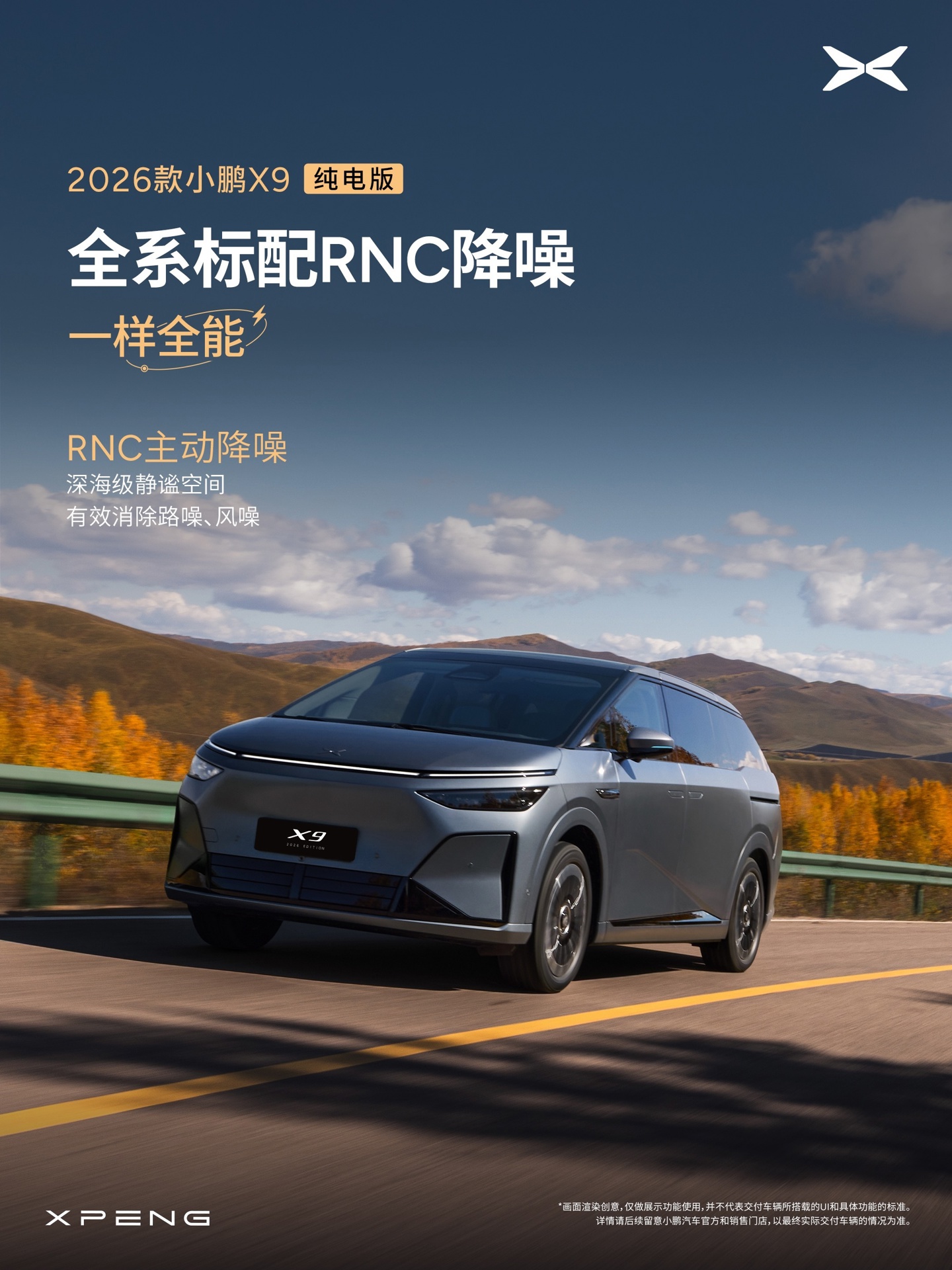 官方表示,2026 款小鹏 X9 纯电版将以“全能基因”全面对齐 X9 超级增程版本。