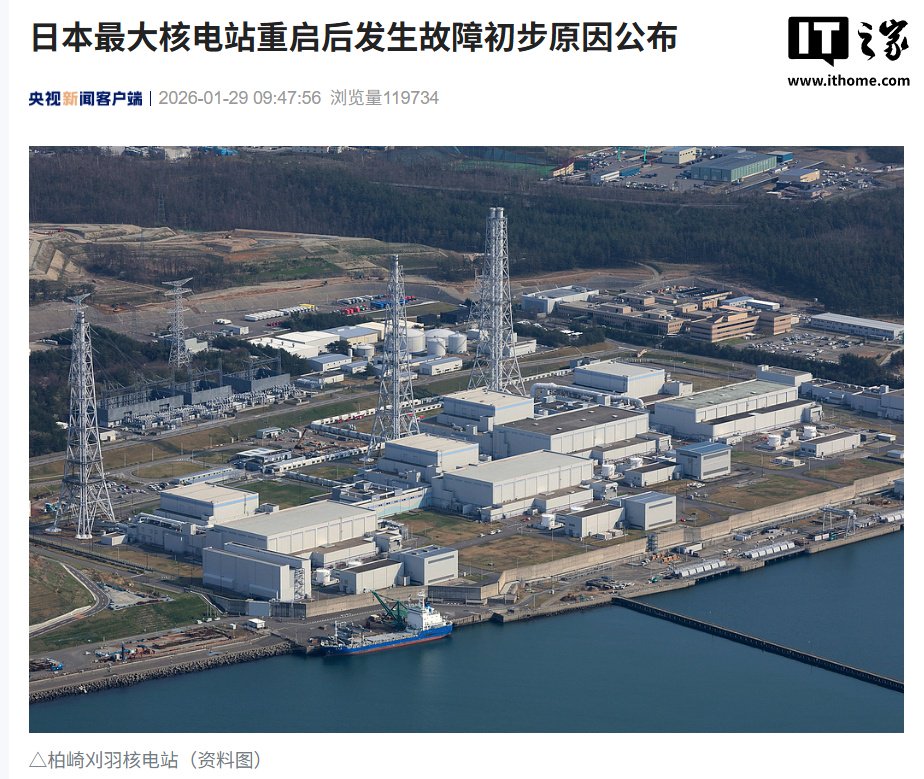 IT之家 1 月 29 日消息,据央视新闻报道,当地时间 1 月 29 日,日本东京电力公司公布了关于柏崎刈羽核电站 6 号机重启后发生控制棒相关警报故障一事调查进展,初步推断事故起因在于变频器与控制棒驱动装置之间的组合设定存在问题。