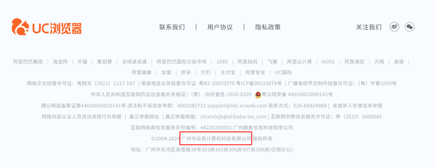 IT之家查询国家企业信用信息公示系统获悉,广州市动景计算机科技有限公司成立于 2005 年 3 月,法定代表人为王鑫,注册资本 3 亿人民币,经营范围包括软件服务、广告业、计算机零配件零售等,由杭州宝轩投资管理有限公司、广州大鱼快乐信息技术有限公司共同持股。该公司核心产品包括 UC 浏览器系列、UC 头条、小萌圈等,为阿里巴巴集团成员。
