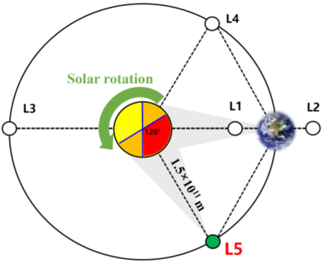 IT之家注:日地系统存在五个引力平衡点,L5 点位于地球公转轨道后方,与太阳、地球构成边长约 1.5 亿公里的等边三角形。目前全球已发射 70 余颗太阳探测器,但尚未有探测器驻留 L5 点。
