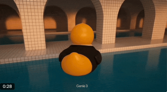 此外,Genie 3 在复杂物理场景上的表现也值得说说。