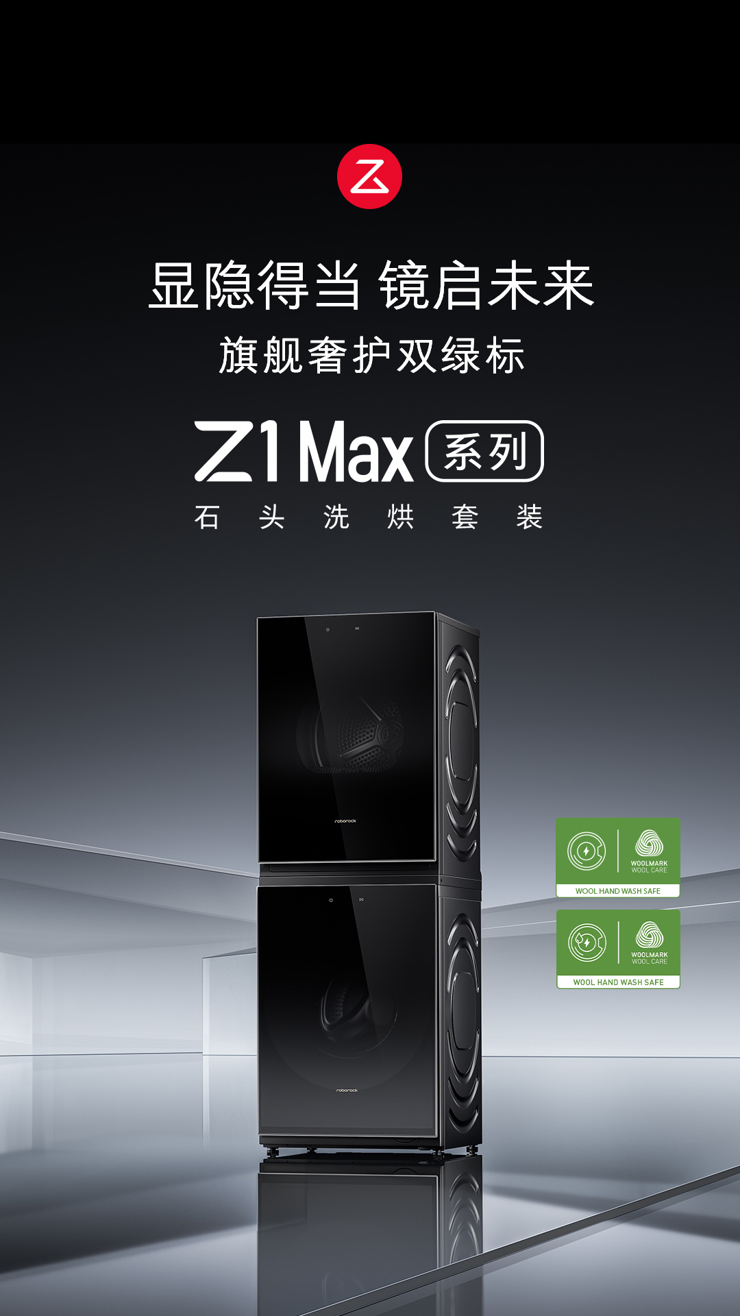 石头 Z1 Max 洗烘套装系列采用 GloScreen 无缝一体式屏幕设计,以一整块浮法玻璃打造纯平外观,并以全彩触控屏代替传统旋钮。