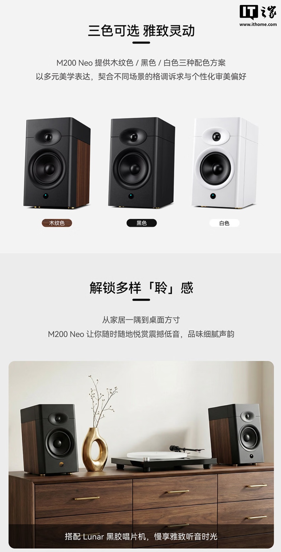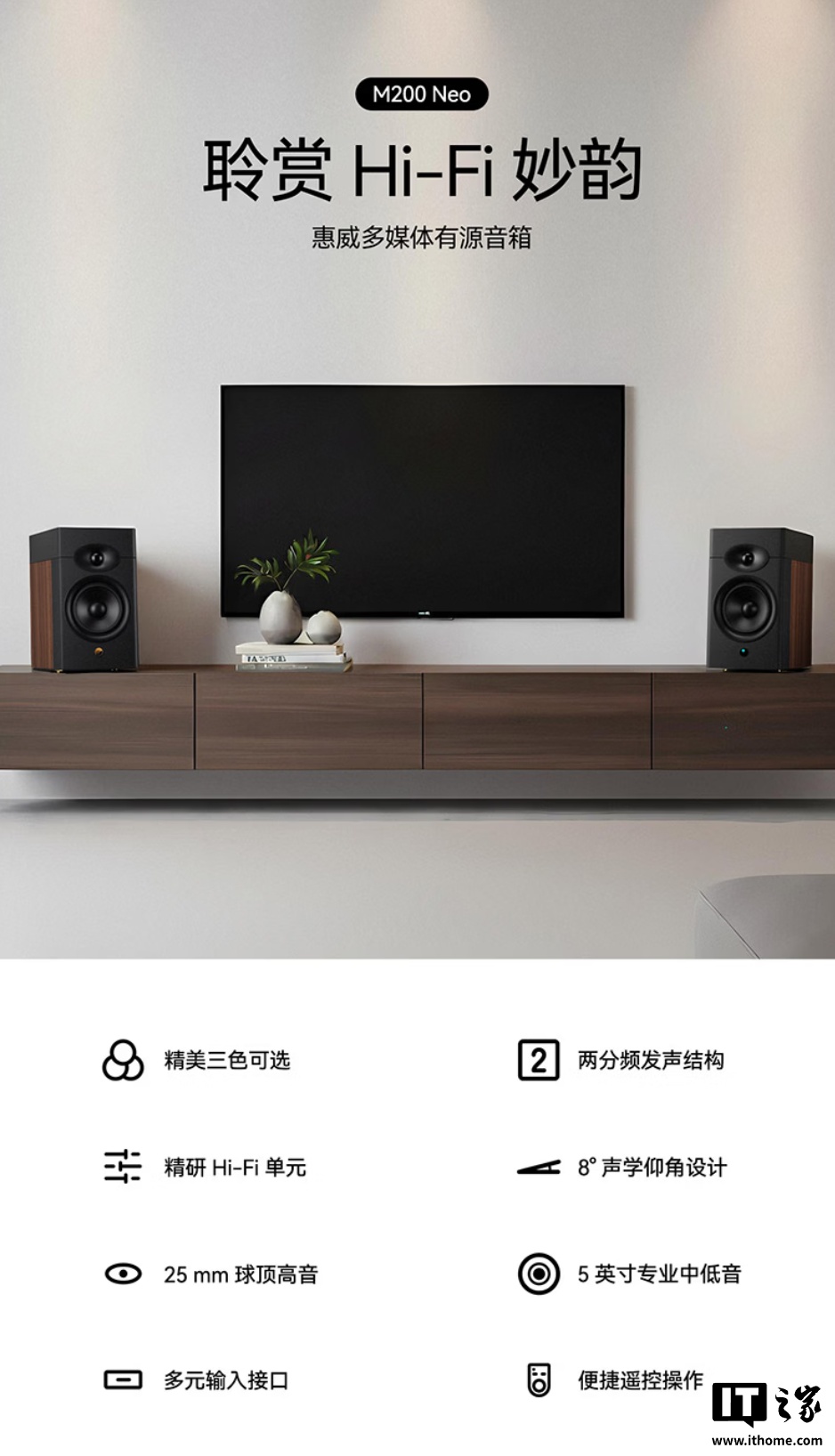 IT之家 2 月 2 日消息,惠威 M200 Neo 桌面 HiFi 音箱现已开启新品预约,可选白色、黑色、木纹色三种配色,标价 1799 元,到手价 1619.1 元。