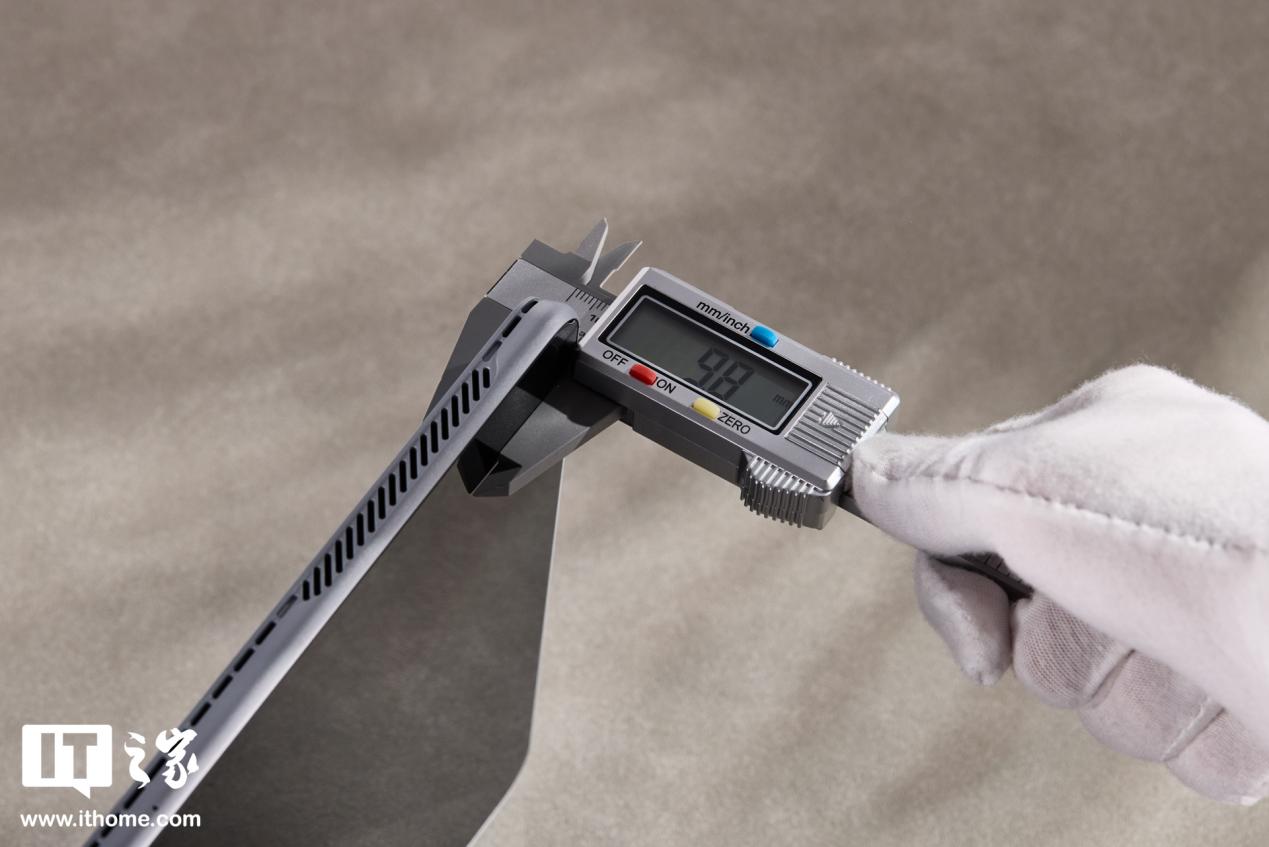 根据官方的数据,酷比魔方 iWork GT Ultra 机身长和宽分别为 300.57mm、195.56mm,IT之家测得机身厚度 9.8mm(官方数据 9.89mm),裸机重量 851g(官方数据 850g)。