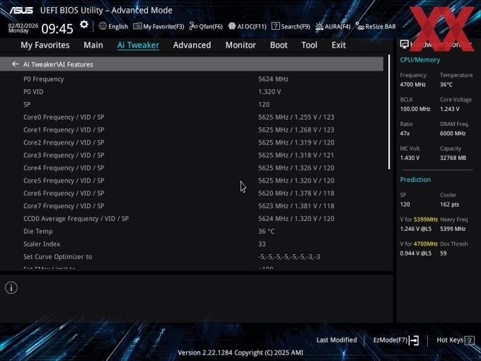 IT之家注:SP 评分是华硕(ASUS)主板 BIOS 中的一项独家功能。主板会根据 CPU 的电压-频率曲线,自动计算出一个分数值。分数越高(如 120 分),代表这颗 CPU 的体质越好,超频潜力越大或同频电压更低。