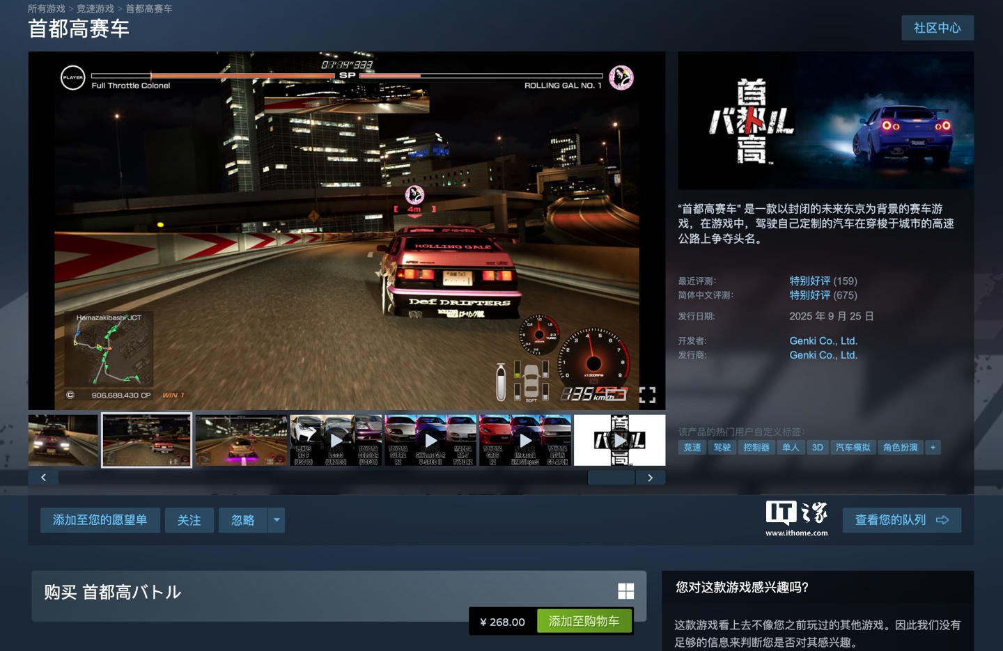 IT之家注意到,本作已于 2025 年 9 月 25 日登陆 PC 平台,Steam 国区定价为 268 元,玩家好评率 94%“好评如潮”。