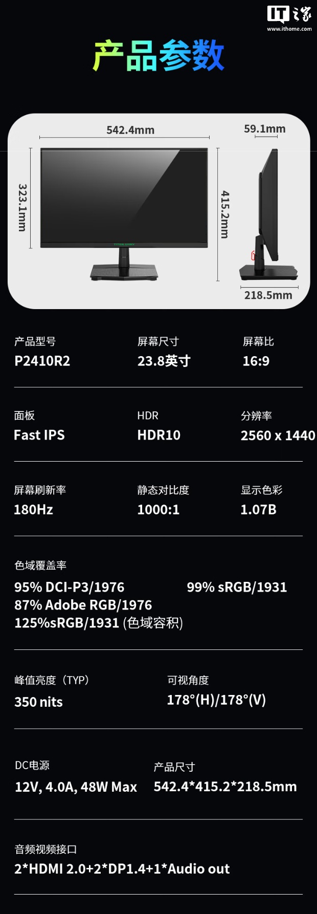 IT之家 2 月 3 日消息,泰坦军团现已在京东上架“P2410R2”23.8 英寸显示器,该机主打 2K 180Hz,定价为 749 元,部分地区国补后到手价低至 674.1 元。