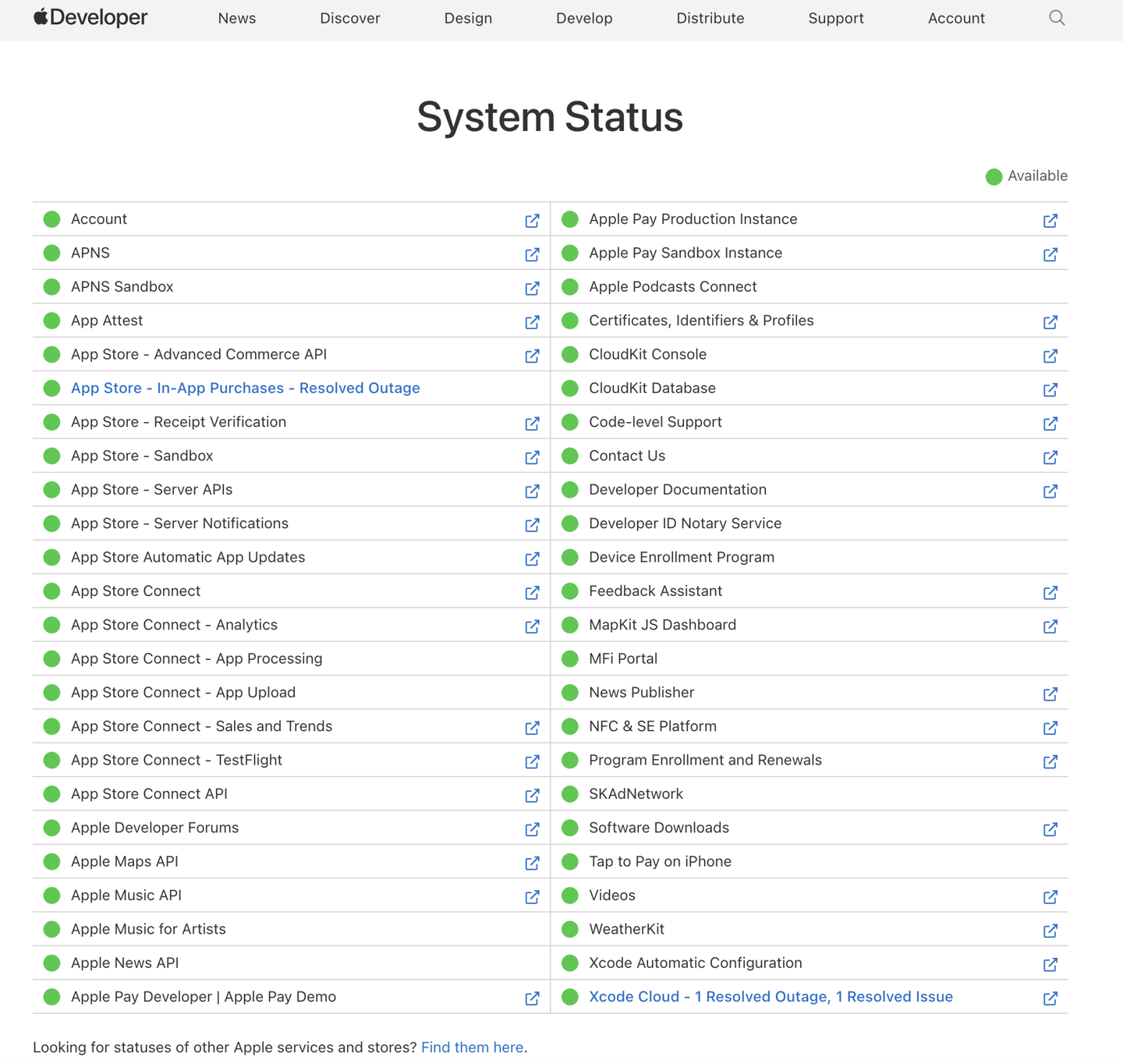 而参考苹果官网,2 月 5 日(今天)05:22,相应问题已解决,但官方未通报具体故障原因。