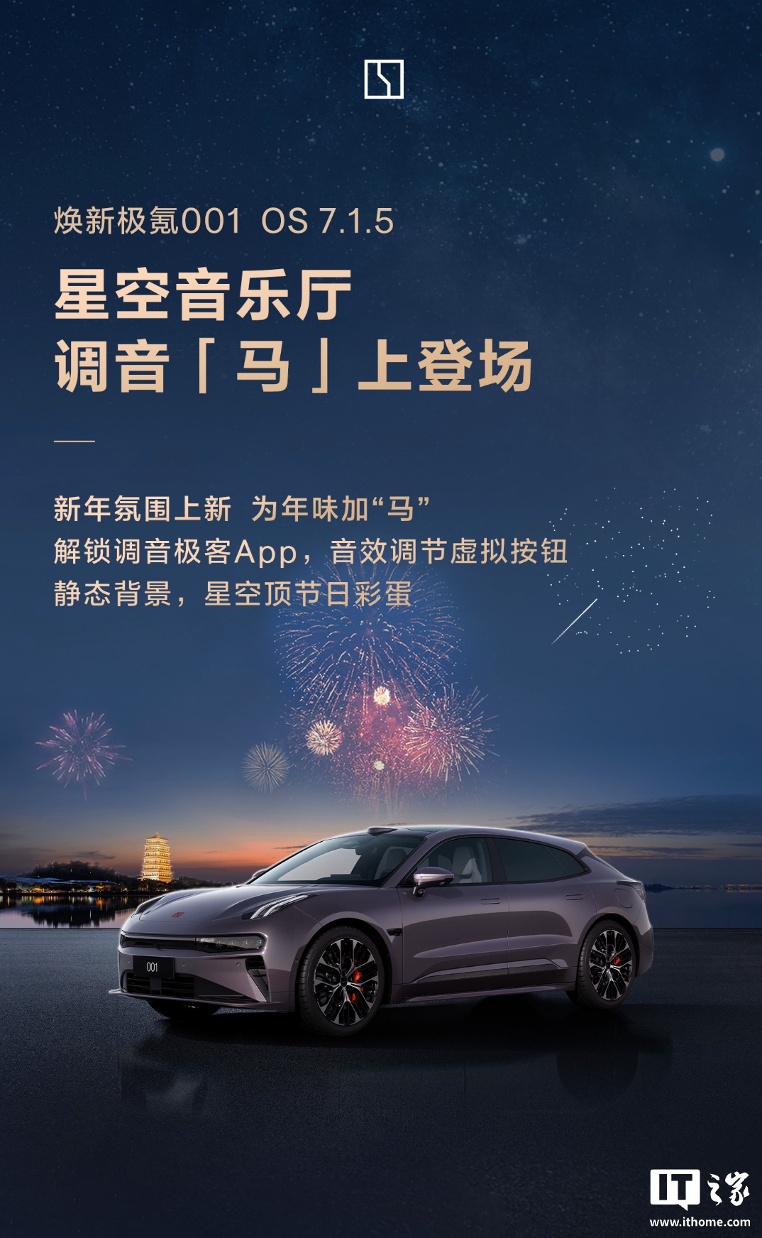 IT之家 2 月 5 日消息,极氪汽车宣布为旗下焕新极氪 001 等车型推出 OS 7.1.5 车机系统更新,主要新增调音极客 App,音效调节虚拟按钮。同时车机还引入静态背景、星空顶节日彩蛋等。