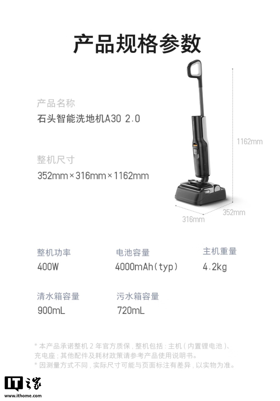 IT之家 2 月 5 日消息,石头科技现已推出石头洗地机 A30 2.0,主要升级 25000Pa 吸力、引入污水除臭模块,定价 1999 元,首发价 1799 元。